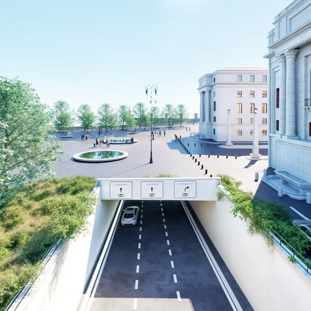 L’interramento della viabilità realizza il rafforzamento dell’asse pedonale Castel Sant’Angelo – San Pietro, consentendo l’eliminazione dell’attuale semaforo all’intersezione con via della Conciliazione e la completa pedonalizzazione di Piazza Pia.