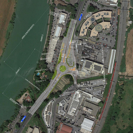 Rotatoria 2: intervento localizzato lungo la S.S.4 Via Salaria in corrispondenza della progressiva al km 13+900, nel tratto confinato dal Grande Raccordo Anulare a Sud e a Nord dallo svincolo dell’Autostrada A1, diramazione Roma Nord ed interessa una delle due intersezioni che costituiscono l’accesso all’abitato di Settebagni.